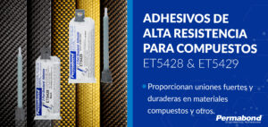 Permabond ET5428 y ET5429 son adhesivos epoxídicos bicomponentes de alta resistencia, formulados para unir sin fisuras materiales compuestos. Los