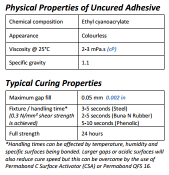 NB: For difficult or porous surfaces using a Permabond activator is recommended. If bonding polypropylene, polyethylene, PTFE, or silicone, prime first with Permabond Polyolefin Primer (POP).